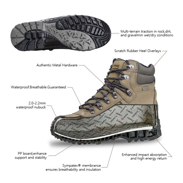 Ayakkabının iç kısmı nefes alabilen ve su geçirmez Alman Sympatex su geçirmez çoraplarla kaplanmıştır, ayaklarınızı her zaman kuru tutar.