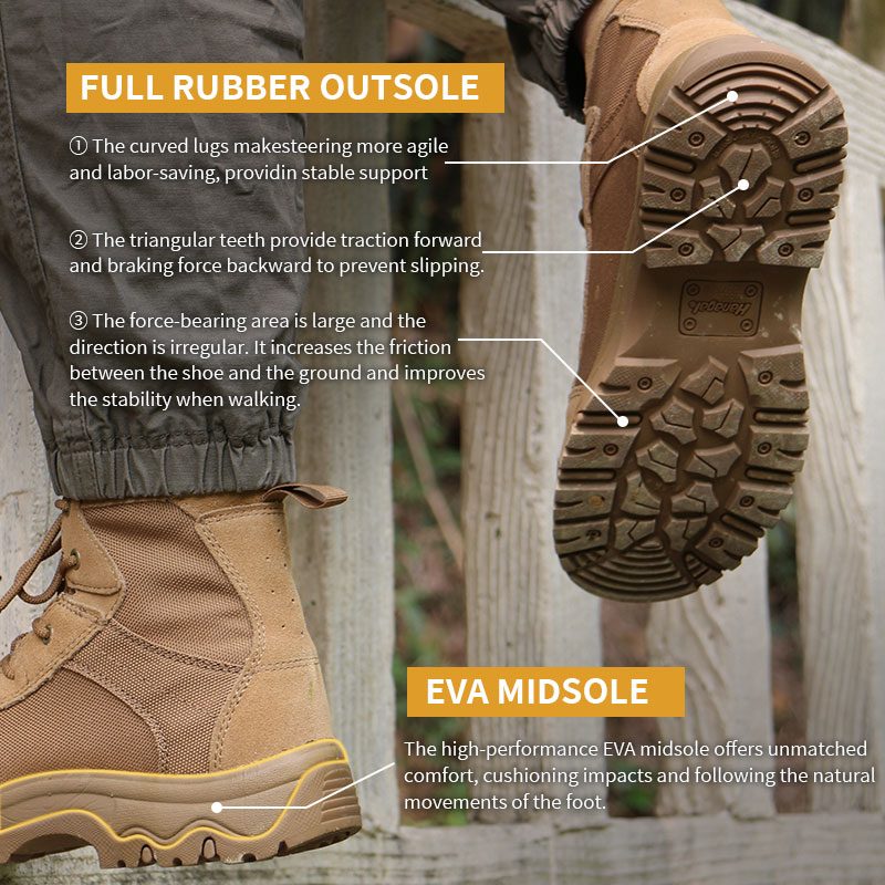Kayalık vadilerden gevşek kum tepelerine kadar, Cordura Kumaş Kauçuk Çöl Taktik Botları performans gösterecek şekilde tasarlanmıştır. Dayanıklı Cordura üst kısım, ağırlığı azaltırken aşınma ve yıpranmaya karşı dayanıklıdır ve çok yönlü kauçuk dış taban, öngörülemeyen çöl yüzeylerinde sağlam bir duruş sağlar. Daha fazla bilgi için bize soruşturma gönderin.