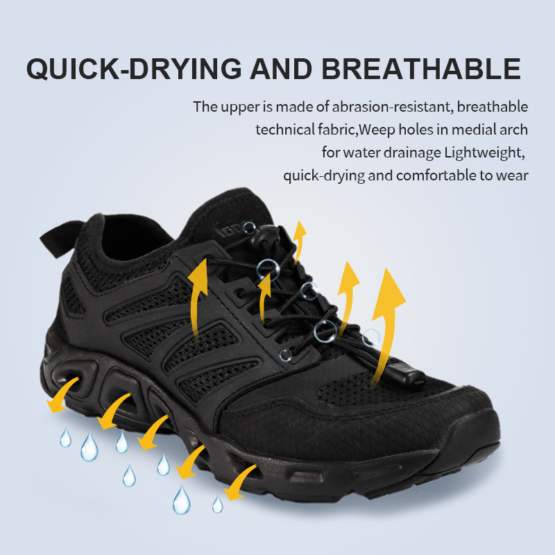 -Hafif ve nefes alabilen -Drenaj ve hızlı kuruma -EVA şok emici orta taban -Kullanışlı Ayakkabı Bağı Tasarımı