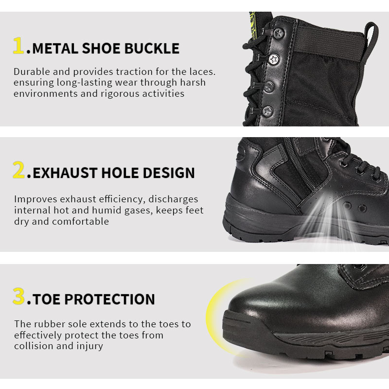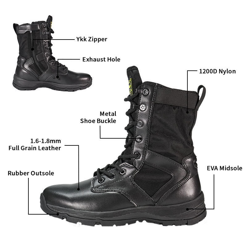 Bu Tam Kauçuk Dış Tabanlı Polis Botları stoklarımızda mevcuttur ve yalnızca 10 çiftten başlayan siparişlerle gönderilmeye hazırdır. Daha fazla ayrıntı veya fiyatlandırma sorularınız için istediğiniz zaman iletişime geçmekten çekinmeyin. Minimum 800 çift sipariş ile kişiselleştirme de mevcuttur. Bu model aşağıdaki avantajlara sahiptir: