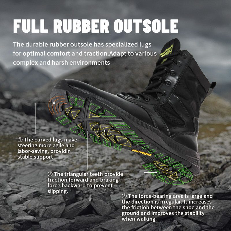 Dayanıklı kauçuk dış taban, optimum konfor ve tutuş için özel çıkıntılara sahiptir. Çeşitli karmaşık ve zorlu ortamlara uyum sağlar