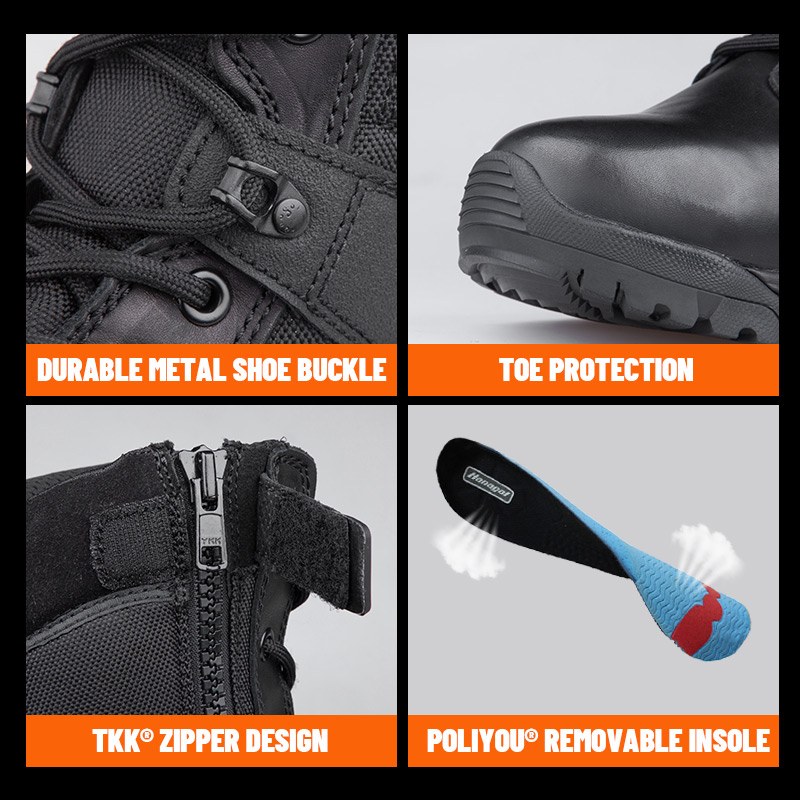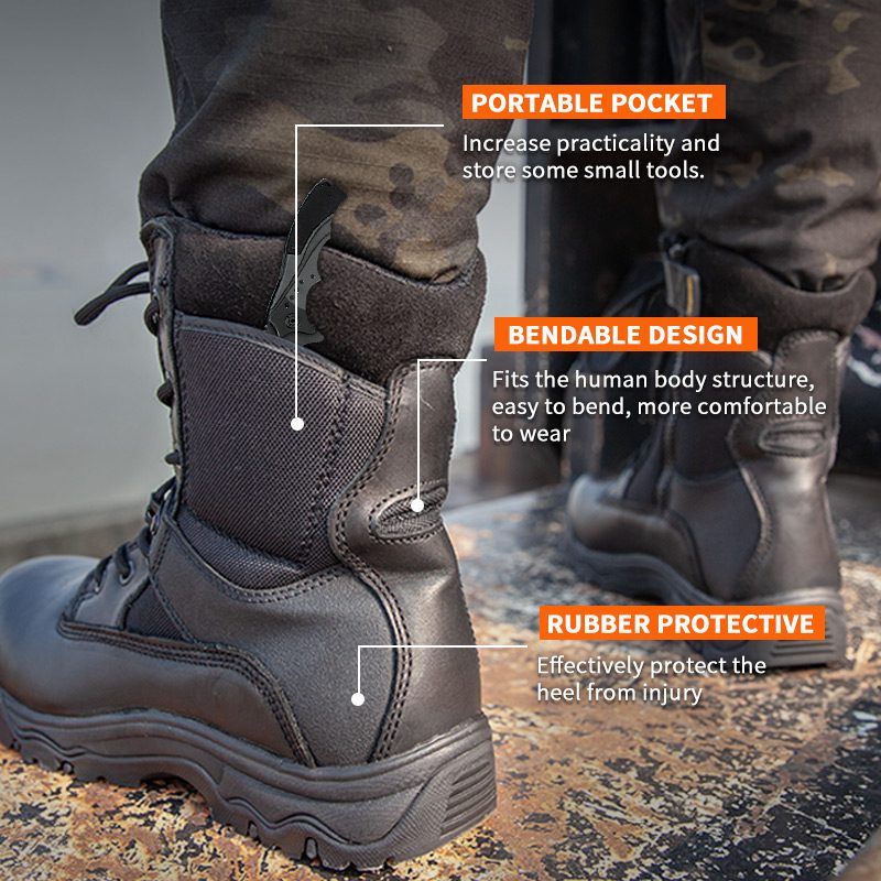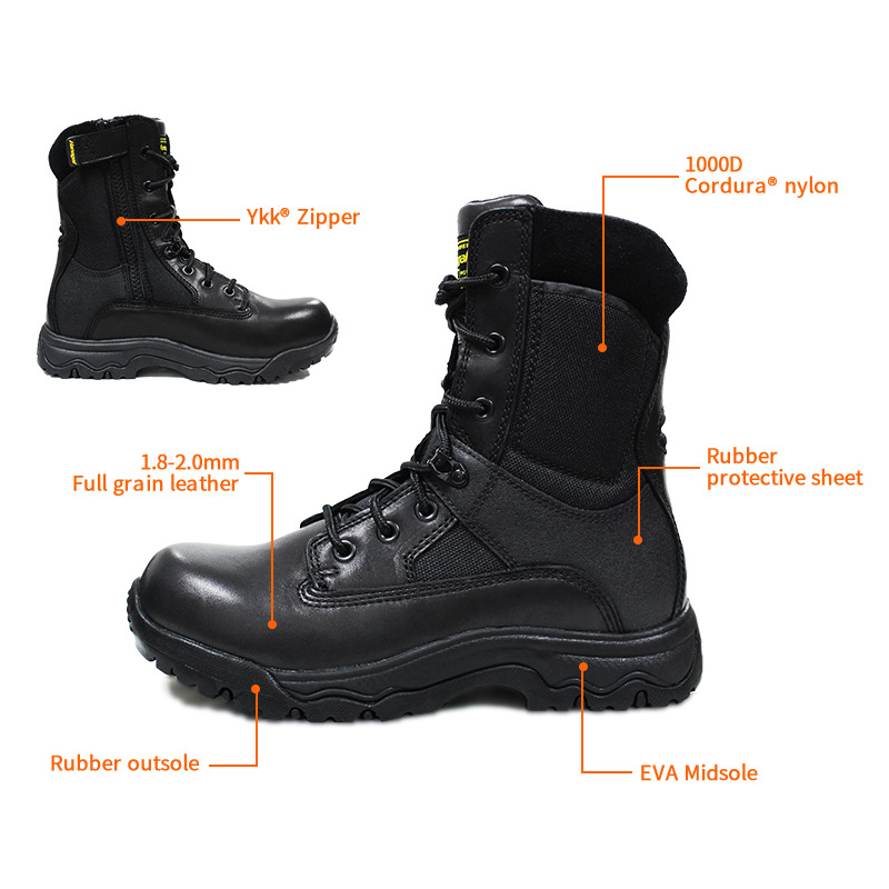 Bu YKK Fermuarlı Sırçalı Deri Polis Botları, marka işbirlikleri ve grup satın almaları için ideal olan 800 çiftlik MOQ ile renk, malzeme ve ayrıntılarda özelleştirme için mevcuttur. Ve bu av botlarının aşağıdaki avantajları vardır: