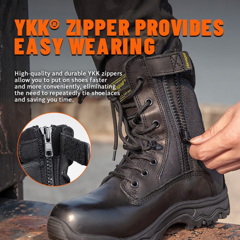 Yüksek kaliteli YKK fermuarlar, botlarınızı daha hızlı ve daha kolay giymenizi sağlar. Bağcıkları bağlayıp yeniden bağlamayı unutun; fermuarı çekin ve zamandan tasarruf edin.